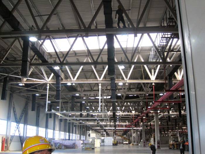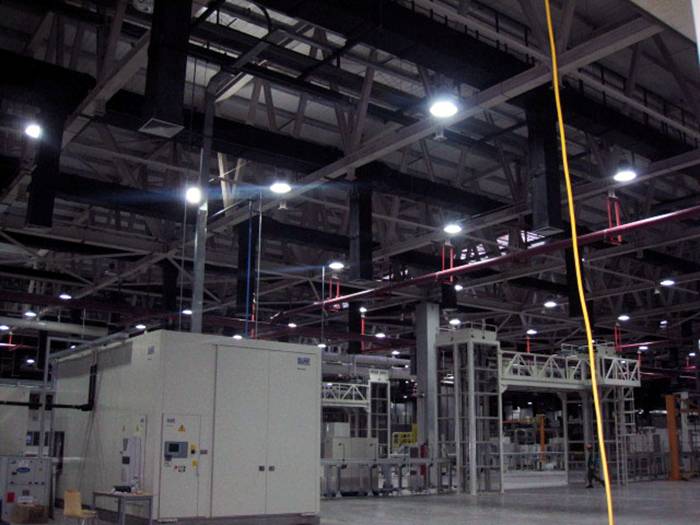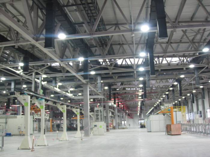 北汽福田无极灯工程改造方案 地址:北京市昌平区 新车间照明设计为1400盏400W白色金卤灯,旧车间人员反映原有车间金卤灯使用一年后 光衰严重,影响车间工作生产效率,同时光线刺