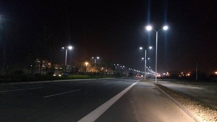 扬州宝应县疏港大道无极灯照明工程 地址:江苏省宝应县叶挺东路 主干道使用560盏250W低频无极灯,次道使用560盏150W低频无极灯,安装后进现场测量无极灯的平均照度达到了50Lux同时无